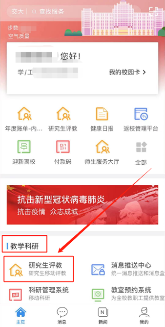 步骤二:在“教学科研”栏目下点击“研究生评教”
